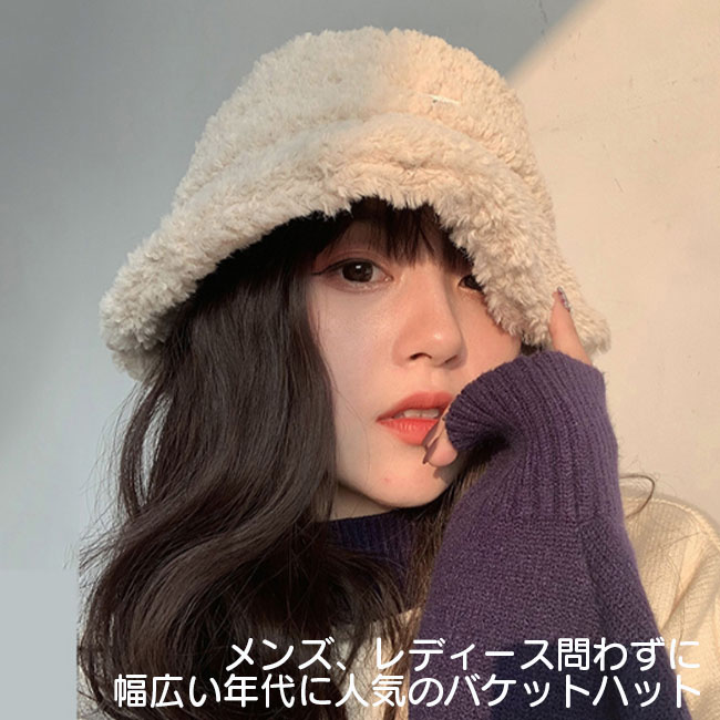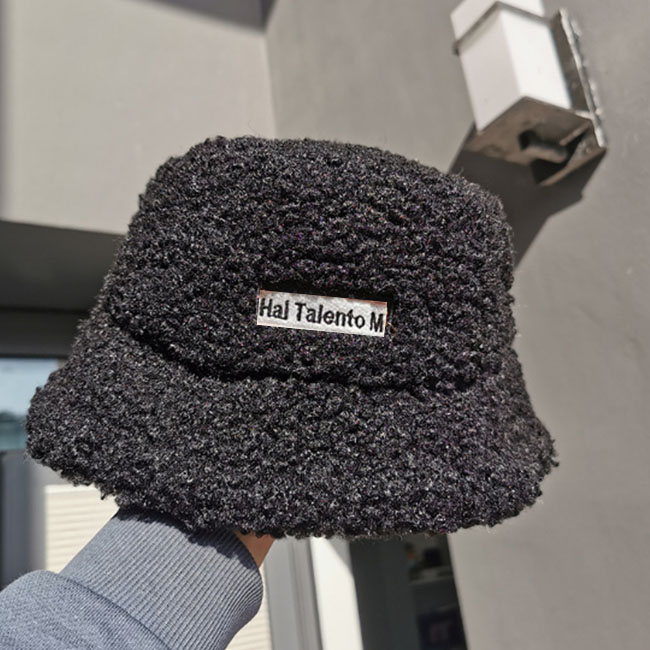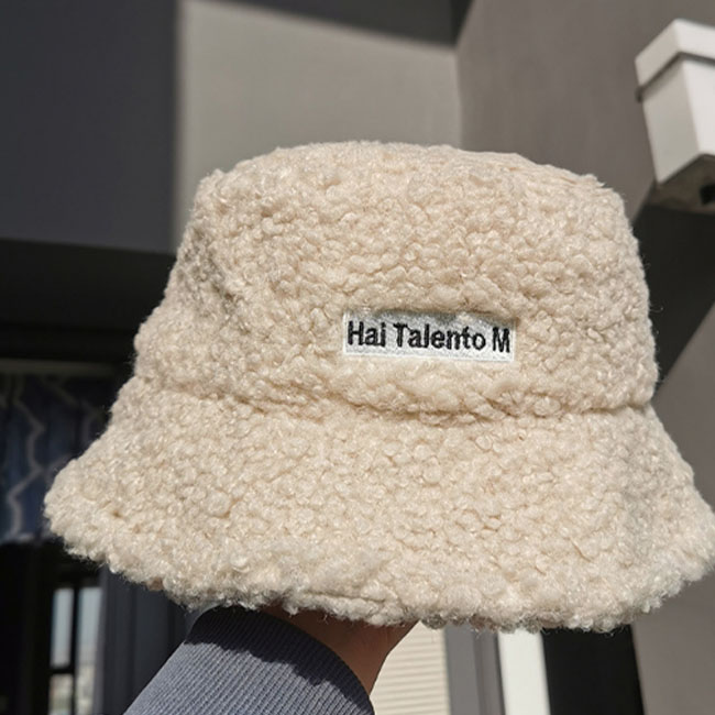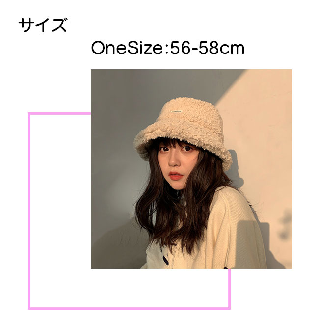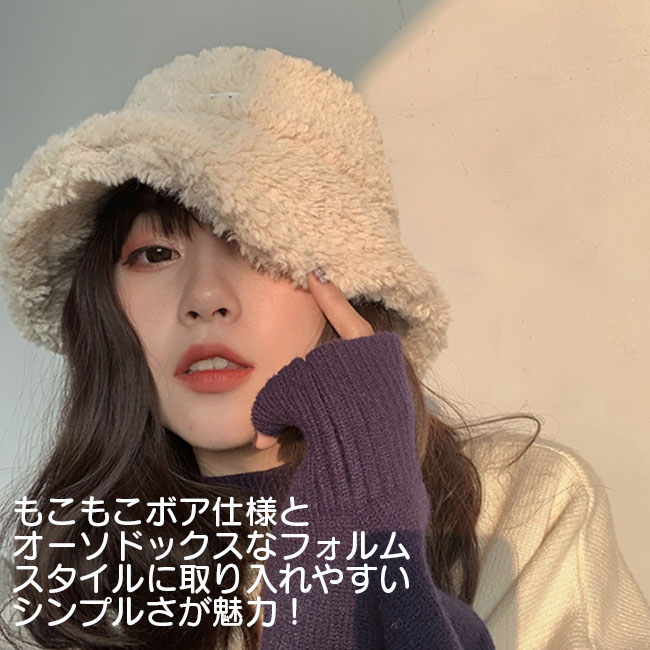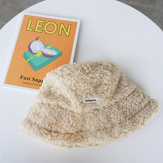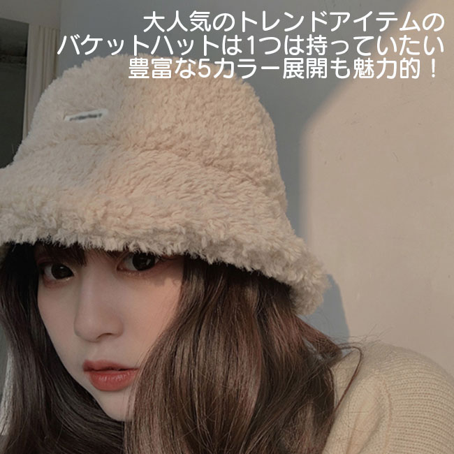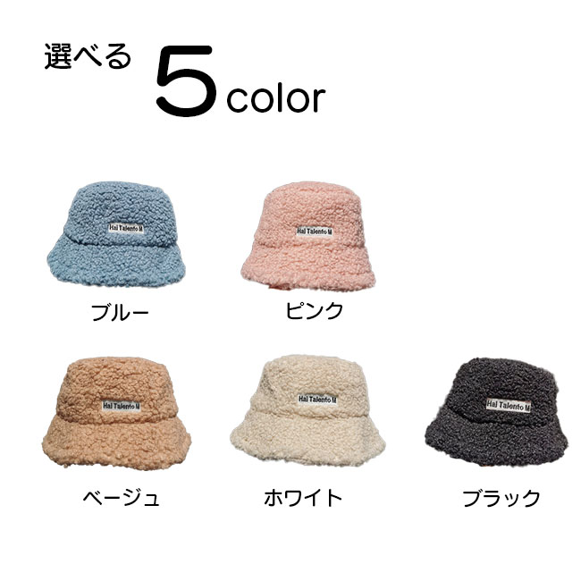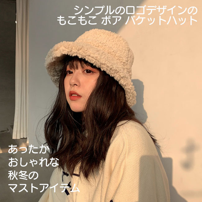 シンプルのロゴデザインのもこもこ ボア バケットハット